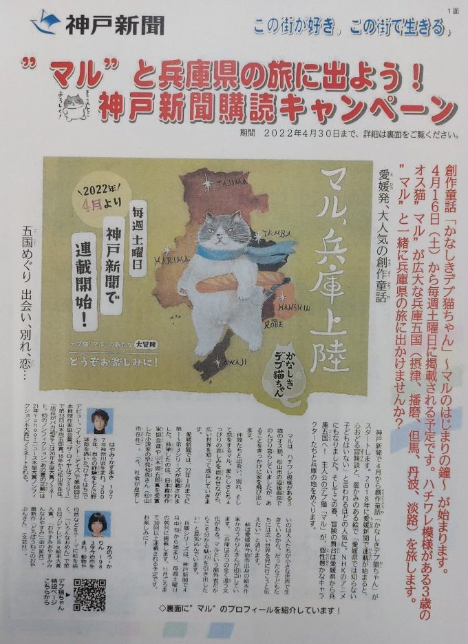 4月16日(土)から毎週土曜日に掲載される「かなしきデブ猫ちゃん」~マルのはじまりの鐘~