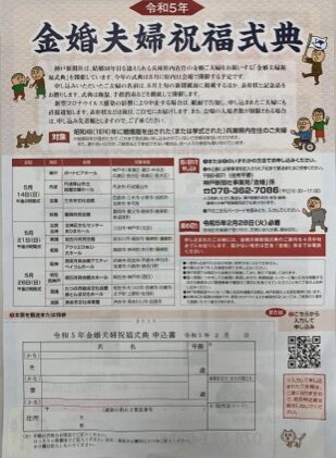 神戸新聞社は、結婚50年を迎えられる兵庫県内在住の金婚ご夫婦をお祝いする