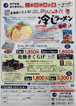 毎年大好評につき、今年も販売します!余市りんごのほっぺ 冷しラーメン