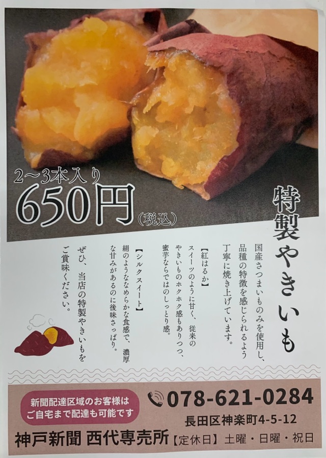 ぜひ、当店の特製焼き芋をご賞味ください(^^)